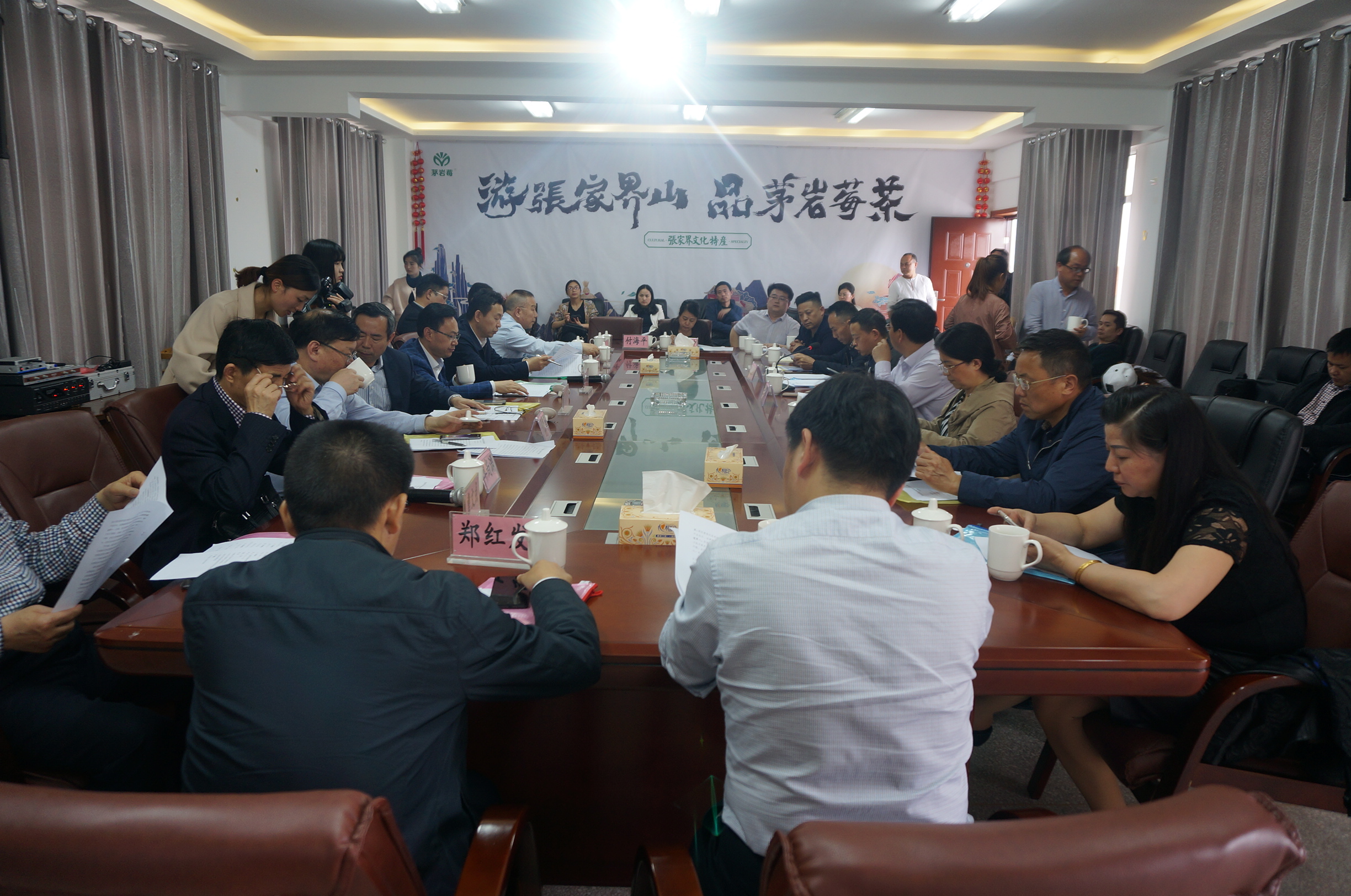 參觀完工廠之后,劉仲華教授一行就張家界市永定區(qū)籌備2018年度莓茶產(chǎn)業(yè)發(fā)展論壇活動(dòng)進(jìn)行了座談交流。在座各位教授、專家、領(lǐng)導(dǎo),就張家界莓茶產(chǎn)業(yè)發(fā)展的現(xiàn)狀發(fā)表了自己的建議和看法,對(duì)張家界莓茶產(chǎn)業(yè)的持續(xù)發(fā)展具有十分重大的促進(jìn)意義。這標(biāo)志著張家界人為把2018年打造成張家界的莓茶元年,為把莓茶打造成張家界名副其實(shí)的第一特產(chǎn),已經(jīng)拉開了產(chǎn)業(yè)發(fā)展、經(jīng)濟(jì)騰飛的工作序幕。