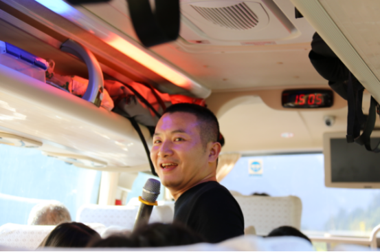 周總詮釋的湖湘文化、講述的毛主席與楊開(kāi)慧的愛(ài)情故事、各種益智游戲的組織以及大家的互動(dòng)與飛揚(yáng)的歌聲……讓整個(gè)車(chē)廂的氣氛持續(xù)抬升。