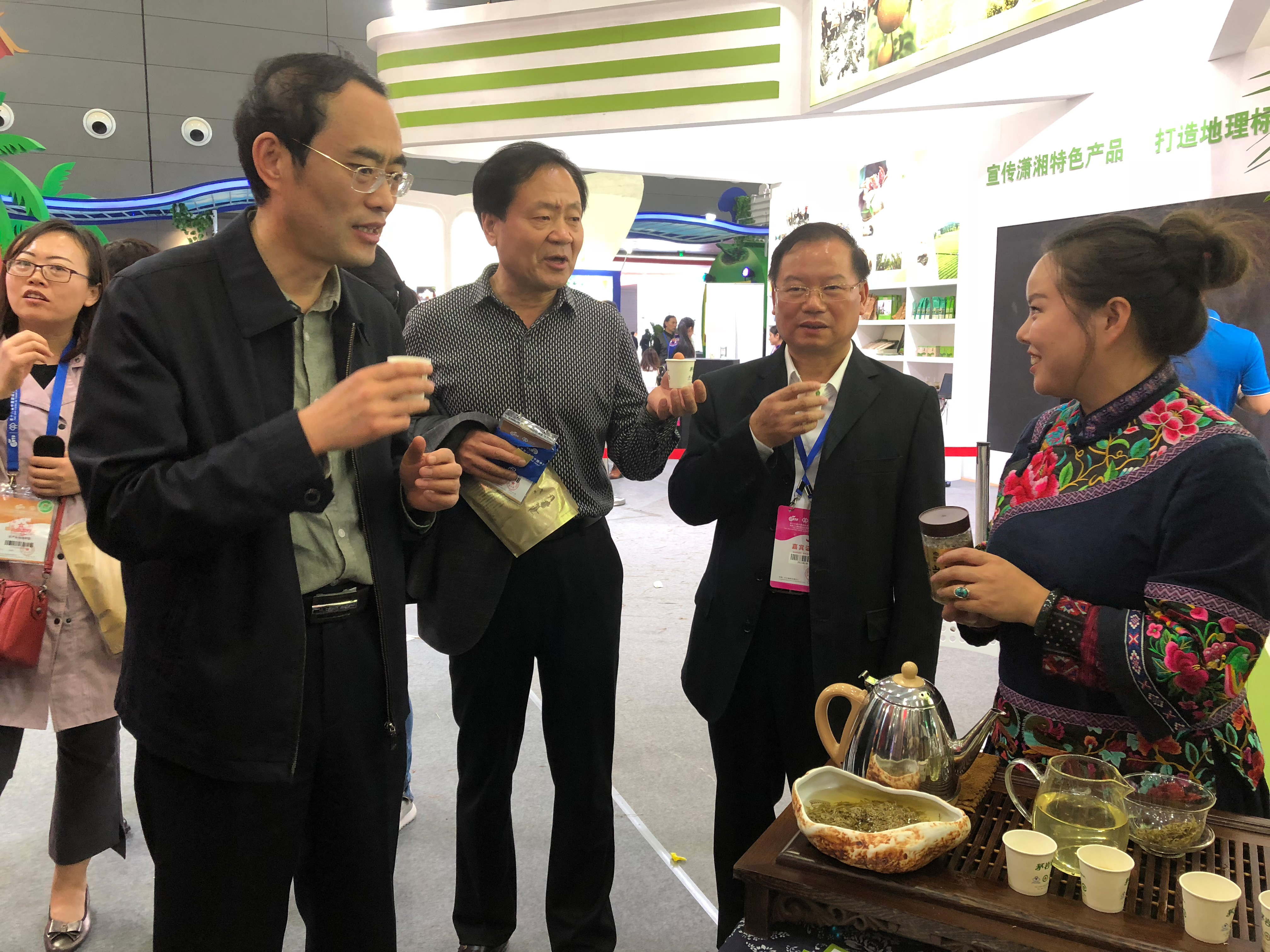 國家綠色食品中心主任張華榮先生來到“茅巖莓”展位品茶。