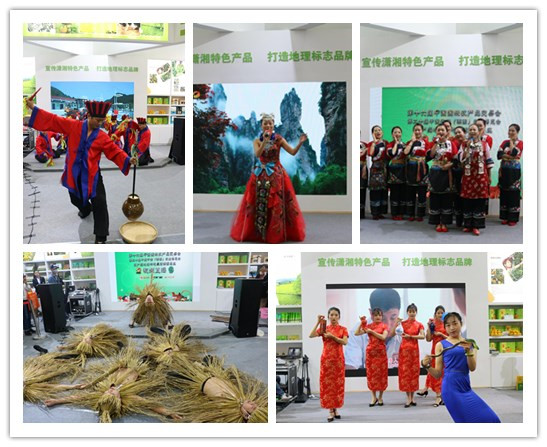 地標(biāo)專展匯聚了來自全國各地的地理標(biāo)志產(chǎn)品、有機(jī)產(chǎn)品、綠色食品等優(yōu)良產(chǎn)品。從一開館,地標(biāo)展館就人山人海。要說吃好喝好樂好,那必須要來湖南館了。在省綠辦等單位領(lǐng)導(dǎo)的精心策劃下,湖南館的各個(gè)企業(yè)準(zhǔn)備了富含各地特色的精彩節(jié)目。有《土家族茅古斯舞》、《土家族梯瑪祭祀》、永州的蛇舞、茶舞《采薇》;還有張家界茅巖莓有限公司的美女小姐姐帶來的《溜溜子十三寨》,一開嗓便吸引了許多觀眾駐足觀賞。