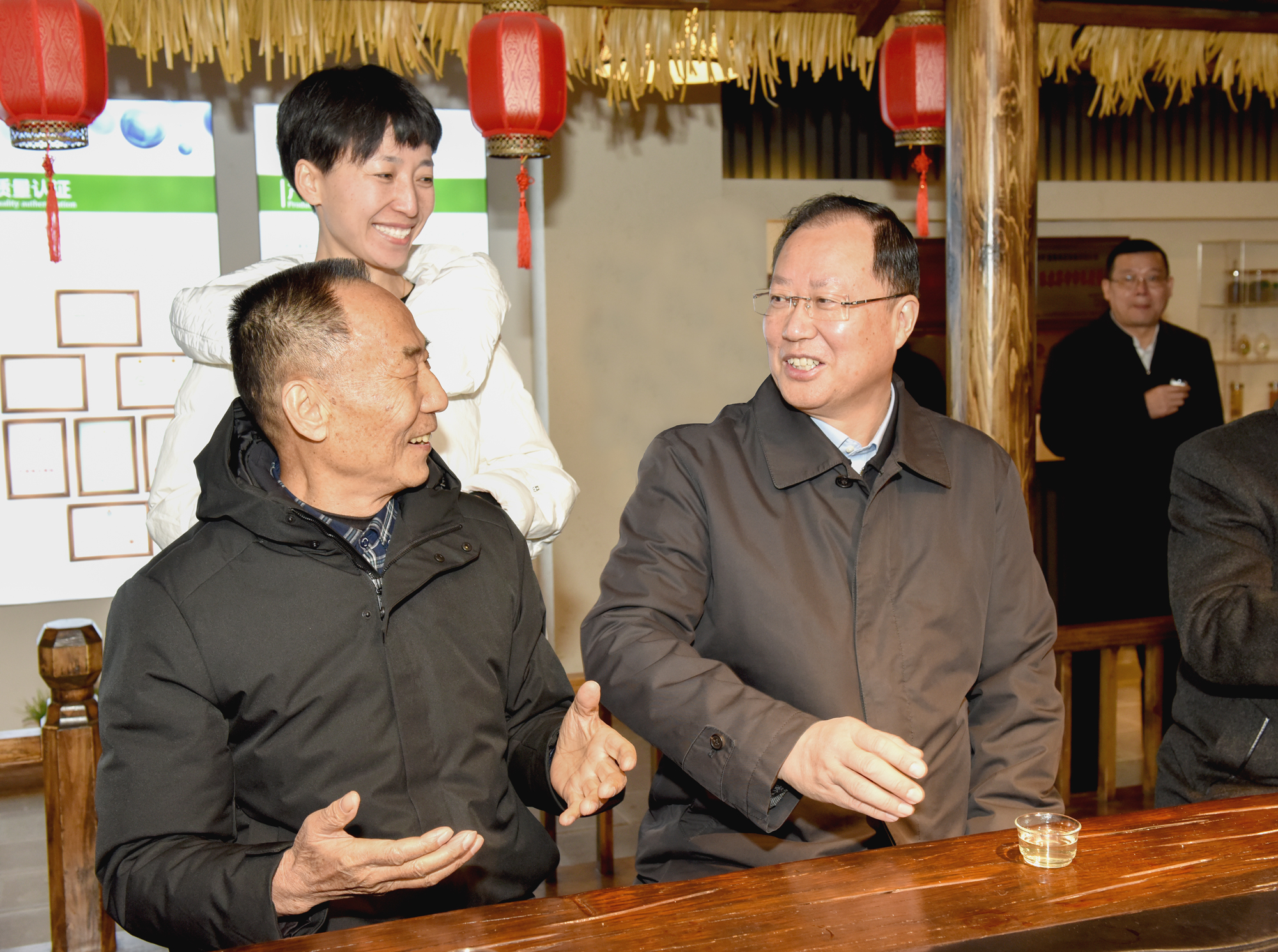 湖南省省長(zhǎng)毛偉明在張家界市委書記虢正貴,市長(zhǎng)劉革安,市委常委、市委秘書長(zhǎng)單鑄飛等領(lǐng)導(dǎo)陪同下來張家界茅巖莓有限公司考查調(diào)研,毛偉明詳細(xì)了解企業(yè)生產(chǎn)經(jīng)營情況。得知茅巖莓茶已成為當(dāng)?shù)厝罕姷摹爸赂徊琛?,毛偉明鼓?lì)企業(yè)繼續(xù)開展深加工,在品質(zhì)、工藝、標(biāo)準(zhǔn)上下功夫,將“一片葉子”發(fā)揚(yáng)光大,豐富旅游產(chǎn)品內(nèi)涵,帶動(dòng)更多老百姓致富。他喝了茅巖莓茶后感覺非常好的說,他有咽喉炎,喝了覺得嗓子特別舒服,回甘很好,對(duì)長(zhǎng)期用嗓過度的老師群體也會(huì)有好處。